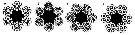 Рис.5. Тормозные канаты: а - по ГОСТ 3077-80; б - по ГОСТ 3079-80; в - по ТУ 14-4-1444-87-А; г - по ГОСТ 7665-80.
