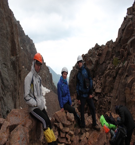 Как всегда мы сняли перевальную записку, сделали памятное фото на перевале и пошли вниз в район Нунотаки. По плану мы должны были идти на перевал Пионер, который был уже совсем близко. Но во время спуска случилось нечто такое, что заставило нас резко поменять планы с нашим следующим перевалом. Неожиданно раздался грохот, напоминающий гром, после которого с ледника Аяк, что был напротив нас начала сходить снежная лавина. Зрелище было захватывающим и устрашающим, ведь мы все впервые наблюдали, как сходит лавина вживую. Заснять на видео ее удалось только частично, но ни одно видео не передаст тех эмоций, что мы испытали в тот момент. Все буквально замерли при виде столь зловещей и опасной для жизни природной стихии. После того, как все спустились, мы направились в сторону перевала Пионер, который оказался настолько засыпан снегом, что штурмовать его было лавиноопасно. Да и снег был мягкий там и не хороший. Уже и время было не ранним, подобные перевалы проходятся рано утром по твёрдому насту снега, а тут уже гарантированно предстояло месиво на подъеме. Сошедшая с ледника Аяк лавина – это плохой знак, подумала Альбина. Не стоит нам брать данный перевал. На Нунотаке стоял лагерь альпинистов из секции ЦСКА, которые подготавливали трассу к предстоящей альпиниаде. Альпинисты позвали нас к себе в шатер, угостили горячим чаем с конфетами и настоятельно рекомендовали нам не идти на Пионер, т.к. там большая угроза схода лавины. Они также подметили, что нам делать нечего, когда узнали про наш маршрут. Ведь альпинисты народ более ленивый, они не любят ходить сильно далеко. Их основная цель – подняться на вершину и спуститься вниз. Как они нам рассказали: все вещи на место им доставил вертолет, и даже за водой не было необходимости ходить, всего хватало. В начале, мы подумали, что коли на Пионер подняться не судьба, значит надо заменить перевал запасным вариантом и подняться вместо Пионера на перевал Амангельды. Данный перевал был указан как запасной вариант в маршрутном листе. После перевала Амангельды должен был последовать перевал Маншук Маметовой, с которого мы должны были уйти вниз в сторону Левого Талгара. Но еще на спуске с перевала Титова мы обратили внимания на то, что снега на перевале Маншук Маметовой довольно много. Мне с Женей еще с альпиниады на пик 28 Панфиловцев знаком данный перевал, нам приходилось на него подниматься. И мы хорошо помним, какие там были спуски в сторону Левого Талгара. Снега было масса, а сам спуск довольно крутой и опасный. Только вот поднявшись на перевал, уже назад дороги нет. В Левый Талгар никак не попасть иначе. Пришлось бы возвращаться назад или попросту закончить маршрут. На такие риски мы идти были не готовы. Поэтому взвесив все за и против, Арман с Альбиной приняли решение пропустить перевал Пионер, Амангельды, Маншук Маметовой и пик Пионер и сразу уйти через Талгарский перевал в ущелье Левый Талгар. По километражу мы особо ничего не теряли, ведь ущелье Левый Талгар достаточно длинное и спустившись в него с перевала Маншук Маметовой, мы бы срезали часть пути. Теперь нам предстоял долгий спуск в низовья ущелья, но в этом была своя прелесть, ведь ущелье очень живописное. По количеству необходимых перевалов мы тоже не проигрывали, нам еще требовался один перевал 1Б категории сложности, т.к. для маршрута 2 к.с. необх