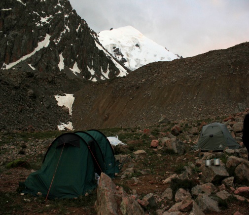 День 5 Утро 5 дня снова пошло не по плану. Встали мы, как и полагалось в 4, дежурные в 3, но из-за того, что на улице шел сильный дождь, пришлось пережидать непогоду в палатке. В принципе дождь был недолгим, но выход у нас вместо 5 утра, был в 7 часу, как обычно. Когда мы вышли из лагеря, погода уже наладилась, и было солнечно. Надежда взять перевал и 2 пика еще не умирала, мы стремительно шли к своей цели. Но как говорится, надежда умирает последней. Оказалось, что до перевала еще идти прилично по морене, время шло, силы заканчивались. Из-за того, что мы так рано встали, я толком не выспался и опять начал отставать. Плюс ко всему у меня начала проявляться горнячка: в висках стучало, ощущалась слабость, и каждый шаг давался с трудом. И вот очередной привал, до перевала оставался еще 1 переход. Арман мне сделал народное лекарство от горнячки в виде воды, лимонной кислоты и взлетных конфет. Эту смесь я еще запил таблетками от головы и вроде как стало легче. Я уже настроился на боевой подъем, т.к. до перевала было рукой подать. Как вдруг Арман сообщает неприятную новость: на пики мы не идем. Вместо этого мы пойдем дальше по Озерному ущелью под перевал Алматы-Алагир. Я сразу же задался вопросом: как же так, почему не идем? Почему опять всё пошло не по плану? Больше всего я на данном маршруте мечтал взойти на пики Советских Альпинистов и СГУ. Я на протяжении всех предыдущих дней был предвкушении, специально берег батарейку на фотике, что даже устоял от соблазна снять лавину с ледника Аяк на видео. В тот момент я сильно приуныл. В голове крутились мысли, что последнее время почему-то всё идет не по плану. Начиная от вручения диплома, заканчивая маршрутом. То как поршиво прошло мое вручение из всех ребят на маршруте, знал только Саня, т.к. мы виделись с ним в тот день. Остальным я не стал рассказывать, чтобы не забивать головы людей своими проблемами. В тот день мой праздник был полностью испорчен из-за одной нелепой ситуации. Конечно то, что мы не пошли на пики, было мелочью, по сравнению с той ситуацией, но в целом то, что всё скопом навалилось за последнее время, сильно повлияло на мое настроение. До самого перевала я уже шел молча, погрузившись в свои мысли. Плохое настроение у меня было до конца дня, просто потом я его уже старался не показывать.