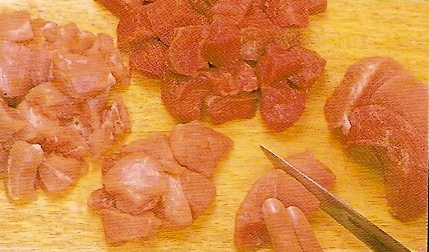 Замочите фасоль на 10-12 часов. 1.Нарежьте мясо кусками по 2 см.