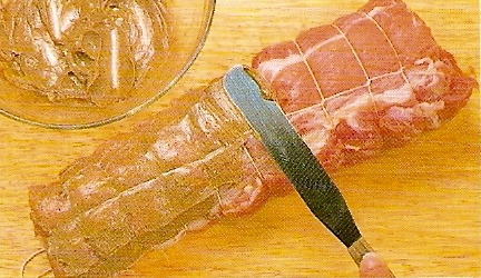 ¼ стакана белой муки; ¾ стакана мясного бульона. 1.Вымойте и почистите мясо. Перевяжите нитью. Разотрите ямайский перец со сливочным маслом до получения однородной массы.