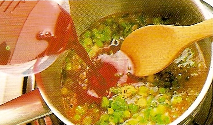 3.Соус. В сотейнике растопите сливочное масло, положите луковички и обжарьте 1 минуту. Затем добавьте уксус и обжарьте ещё 1 минуту. Мелко раздробите бульонный кубик и высыпьте крошки в сотейник, вылейте туда же сироп и мясной бульон и оставьте повариться на медленном огне 10 минут не накрывая крышкой.