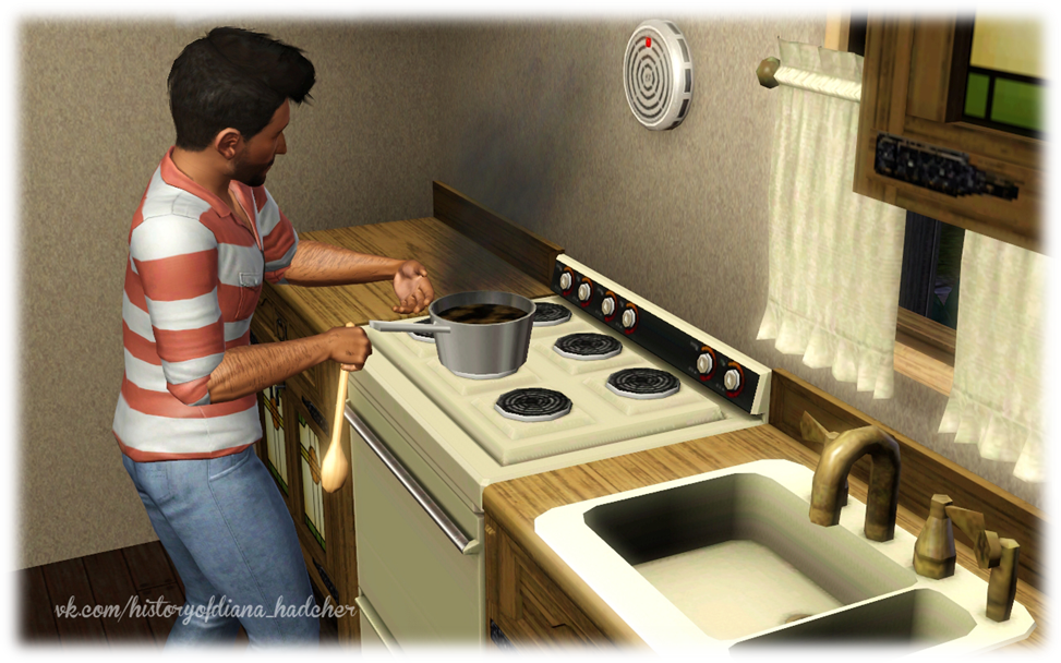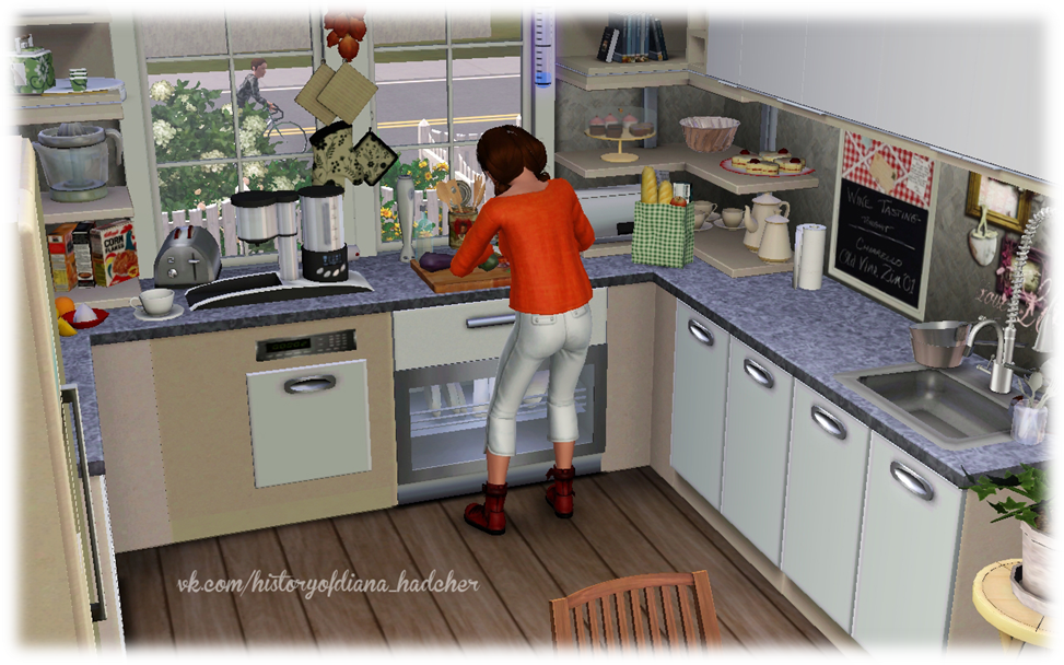 После убирание постели я спускаюсь на первый этаж и направляюсь на кухню. Конечно я там готовлю себе завтрак.