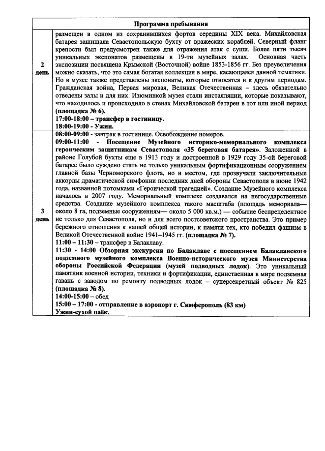 1. Тюменская делегация посещает следующие Маршруты согласно установленным квотам. Квоты распространяются на школьников и сопровождающих лиц. В группе на каждых 10 школьников приходится 1 сопровождающий. «За нами Москва» - 66 чел.; «Героический Севастополь» - 33 чел. 2. Программа маршрутов «За нами Москва» и «Героический Севастополь» представлены в Приложении 1. 3. Предварительные сроки маршрута «За нами Москва»: с 24 по 27 июля 2015 года – 30 участников; с 12 по 15 августа – 30 участников. 4. Предварительные сроки маршрута «Героический Севастополь»: с 1 по 30 сентября 2015 года – 30 участников. 5. Один участник может посетить один маршрут. 6. Прибытие до места назначения осуществляется воздушным транспортом. Отправление и прибытие от аэропорта Рощино г. Тюмень. Дата и сроки Маршрута будут согласованы отдельно с каждой группой (согласно загруженности туроператоров). 7. Проживание в гостиницах, трехразовое питание и экскурсионные программы за счет средств федерального бюджета. Транспортные расходы и оплата сопровождающего за счет средств родителей.