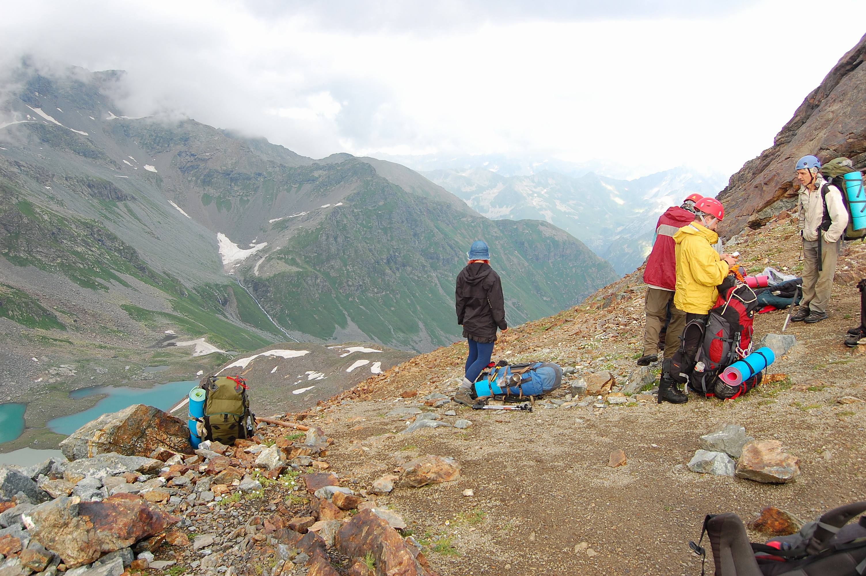 З Інтернетджерел можна дізнатись, що спуск до Зелених озер з перевалу не складний та проходить по бувалому сніжнику і займає 40 хвилин. УВАГА! Насправді сніг відступив, оголивши баранячі лоби. Тому спуск займає більше часу. Спочатку перші 60 метрів йде стрімкий спуск по кам’яній стежині яка виходить на відкриті баранячі лоби. Тут потрібна мотузка та організація пункту страховки із 3-4 крюків тому що порода крихка. Група спускається по вертикальних перилах за допомогою спускового пристрою «вісімка» (фото 42). До сніжника вистачить мотузки 50 м. Крутизна сніжника складає 40 - 45 градусів. Рекомендуємо організувати пункт страховки з двох ледорубів та спускатись перших 50 м сніжником по вертикальних перилах. Якщо вистачає досвіду та впевненості можна спускатись у кішках. Сніжник має проталину після якої кут зменшується до 30 градусів. За таких умов спуск для 9 учасників займає 2 години. Мінус 250м висоти.