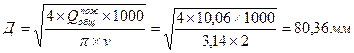 v – скорость движения воды по трубам = принимаем диаметр трубы 25 мм.