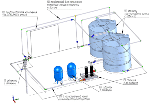 Схема водозаборного узла с сайта soyuzproekt.ru обустройство водозаборного узла, подача воды из артезианской скважины