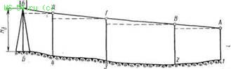 Рис. 35 б. Линия пьезометрических напоров Решение. Для расчета составляем таблицу (см. табл. 10), куда вносим известные данные и результаты подсчета. Отметим, что в данном случае при отборе воды в узлах сети расчетный расход для каждого участка сети равен соответствующему транзитному расходу. Так, расчетный расход для участка 1—2 равен 5 л/сек, для участка 2—3 5 + 6+5=16 л/сек. Соответственно расчетным расходам воды для других участков, показанных на рис. 35, а, подберем диаметры труб, принимая при этом скорости в пределах, указанных в § 16. Затем определим потери напора на отдельных участках главной магистрали, пользуясь таблицами ВОДГЕО, и определяем сумму потерь напора в магистрали от водонапорной башни до наиболее удаленной точки. Отложив в точке 1 величину заданного свободного напора Нсв = 20 м, получим начальную точку А пьезометрической линии. В точке 2 напор, очевидно, должен быть выше напора в точке 1 на величину 2, 82 м (потери напора в трубах на участке 1—2), которую берем из табл. 10; отложив ее, получим точку В. Таким же образом находим точки Г, Д и Б пьезометрической линии. Линию АВГДБ называют пьезометрической линией. Пьезометрическая отметка в точке Б будет одновременно отметкой дна бака башни. В нашем примере величина этой отметки 137, 93 м. Вычитая из нее величину отметки поверхности земли, получим высоту башни, которая равна 137, 93— ПО = = 27, 93 м. Таблица 10