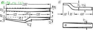 Рис. 38. Инструменты для заделки раструба: а— конопатка; б — чеканка Асбестоцементный заполнитель состоит из смеси 30% (по весу) сухого короткого асбестового волокна и 70% портландцемента с добавлением 10—12% воды. Увлажненную смесь закладывают слоями в раструб с последовательным уплотнением их чеканкой, по которой ударяют молотком. Гидравлическое испытание таких соединений производят не раньше чем через 12—24 ч после чеканки. Асбестоцементные стыки сравнительно эластичны и коррозионно-стойки. Стальные трубы. Стальные трубы применяют главным образом при укладке водоводов и водопроводных линий с рабочим давлением выше 10 ати, а также при укладке труб в макропористых грунтах, в сейсмических районах, при устройстве переходов под дорогами, дюкеров, где требуется большая сопротивляемость динамическим нагрузкам и изгибающим усилиям. Электросварные трубы с продольным швом, рассчитанные на внутреннее давление до 15 ати по ГОСТ 4015—58, изготовляют внутренним диаметром 400—1600 мм, длиной 5—6 м, при толщине стенок от 9 до 14 мм; бесшовные горячекатаные — по ГОСТ 8732-58 с условным проходом 200—800 мм. Бесшовные холоднокатаные и холоднотянутые изготовляют по ГОСТ 8734-58 с условным проходом до 200 мм. Фасонные части для соединения стальных труб применяют также стальные, из листовой стали или из отрезков труб, вырезаемых по выкройкам и свариваемых между собой. Стальные водо- и газопроводные трубы по ГОСТ 3262-62 изготовляют с условным проходом от 10 до 150 мм; оцинкованные используют для хозяйственно-питьевых водопроводов, а неоцинкованные (черные) для отопления (см. § 38). Для наружных водопроводных сетей эти трубы применяют в редких случаях — для устройства ответвлений небольшого диаметра, а также для временных водопроводов. Стальные трубы соединяют посредством сварки. Водо- и газопроводные трубы по ГОСТ 3262-62 можно соединять также на резьбовых муфтах. Стальные трубы, уложенные в землю, подвергаются большой коррозии, вызывающей разрушение металла труб. Укладываемые в землю стальные трубопроводы для защиты от коррозии покрывают битумной мастикой и крафт-бумагой в 1—3 слоя. В зависимости от степени коррозионного действия применяют нормальное, усиленное и весьма усиленное покрытие. Трубы изготовляют внутренним диаметром от 50 до 500 мм, длиной от 3 до 4 -и Преимуществами асбестоцементных труб являются их диэлектричность, вследствие которой трубы не подвергаются действию блуждающих электрических токов, малая теплопроводность, небольшой вес, гладкость стенок, сохраняющаяся в процессе эксплуатации, стойкость в отношении коррозии и достаточная механическая прочность. К недостаткам таких труб следует отнести их плохую сопротивляемость ударам и динамическим нагрузкам; поэтому требуется особая осторожность при транспортировании и укладке их.