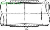 Рис. 39. Стыковые соединения асбестоцементных труб Соединения асбестоцементных труб. Асбестоцементные трубы соединяют посредством асбестоцементных муфт (рис. 39) с уплотнением их резиновыми кольцами. На внутренней поверхности муфты имеются выступы, удерживающие резиновые кольца. Эти кольца, зажатые между трубой и муфтой, создают герметичность соединения. Надевают муфты на трубы при помощи особого домкрата. Для более гибкого соединения применяют специальные металлические муфты (муфта Жибо) с болтовыми соединениями. Железобетонные трубы. Для водоводов целесообразно применять напорные железобетонные трубы из предварительно напряженного железобетона большого диаметра условным проходом от 500 до 1500 мм на давление до 10 ати. Соединяют такие трубы при помощи муфт с резиновыми кольцами или при помощи стыковых соединений, представленных на рис. 40.