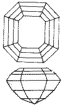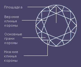 Рис. 2. Элементы огранки: а) вид сбоку; б) вид сверху; в) вид снизу