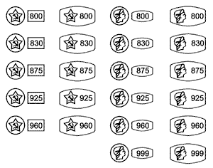 В соответствии с Федеральным законом «О драгоценных металлах и драгоценных камнях», Постановлением Правительства РФ «О порядке опробования и клеймения изделий из драгоценных металлов» № 643 от 18 июня 1999г все изготовляемые на территории Российской Федерации, а также ввезенные на территорию Российской Федерации для продажи, ювелирные изделия, должны соответствовать утвержденным пробам и быть заклеймены государственным пробирным клеймом. Опробование и клеймение ювелирных и других бытовых изделий из драгоценных металлов в Российской Федерации осуществляется Российской государственной пробирной палатой при Министерстве финансов Российской Федерации. Продажа ювелирных и других бытовых изделий из драгоценных металлов, не соответствующих ни одной из установленных проб, не допускается. Пробирные клейма делят на основные и дополнительные. Основные пробирные клейма имеют самостоятельное значение. Дополнительные клейма применяют для клеймения разъемных и легко отделяемых деталей изделий и только в сочетании с основным пробирным клеймом. Клейма для разных драгоценных металлов имеют различную форму, но в каждом обязательно должен быть знак удостоверения (с 1958г. – рельефное изображение серпа с молотом на фоне пятиконечной звезды; с 1994г. – профиль женской головы в кокошнике, повернутой направо), цифровое обозначение пробы сплава и шифр госинспекции пробирного надзора в виде буквы, точки или наклонной черты. Наличие на изделиях из сплавов драгоценных металлов данного клейма свидетельствует о соответствии сплава указанной пробе. Клеймо в виде лопатки применяется для клеймения ювелирных изделий из сплавов золота; в виде бочонка – для клеймения ювелирных изделий из сплавов серебра; в виде многогранника – для клеймения ювелирных изделий из сплавов платины; в виде усеченного овала – для клеймения ювелирных изделий из сплавов палладия.