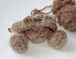 продолжаем вязать.... 19 ряд: (5 ст.б/н., 2 ст.б/н вместе.) 6 раз (42) стянуть на нить оставшиеся петли получилась вот такая заготовка...