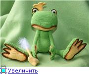 Этап 6 Сборка и оформление: 1.Пришить глазницы к голове между 6 и 7 рядами сверху и 15 и 16 рядами снизу, над щеками. 2.Соединить голову и тело. 3.Приделать ручки-ножки к телу. 4.Пришить корону. 5.Затонировать голову – переход от зеленого к желтому, также веки, стопы и кисти. Тонировать по желтой части либо саму линию стыка. Про тонировку многие спрашивали. Я тонировала масляными красками. Выдавить немного краски на бумажную салфетку и оставить на пару минут, тюбик с краской конечно закрыть) необходимо это для того, чтобы лишнее масло впиталось в салфетку - оно нам на игрушке не нужно особо) Берем небольшую плоскую кисточку, они пожестче, макаем аккуратно в краску-чтобы только сам плоский край щетинок был в краске и делаем пару мазков по салфетке-так мы убираем лишнюю краску с кисточки - мы ведь собрались тонировать нашего лягуха, а не рисовать по нему) После тонируем все нужные емста у нашего прынца) После работы кисточки промыть с ылом под теплой водой. Немножно про тонировку масляной пастелью - принцип тот же, только пастель нужно изначально покрошить - много нам не надо, и потом нашу крошку-пастель наносим ватной палочкой например. Также можно после по нашей тонировке пройтись уже чистой сухой палочкой - так мы лучше вотрем пастель и уберем излишки. Так же можно поробовать тонировать маркерами для ткани (текстильные маркеры) - но одно существенное Но! - они требуют термического закрепления, что не совсем представляется возможным, хотя аккуратненько можно попробовать на игрушке из хлопка. 6.Пришить/приклеить глаза. Украсить пальчики бубенчиками – по желанию.