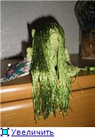 Ну и напоследок волосы Для каждой волосины подходящая длина - не менее 40 см. Я наматывала на папку и разрезала по двум сторонам. Если такой большой не найдёте, наматывайте на книжку длиной 20 см и разрезайте с одной стороны. Крепим кто как считает нужным. Я протягивала серединку нитки скозь петлю головы и потом протягивала хвосты черех образовавшуюся петельку. Туго затягивала. Этот способ есть у нас на форуме отдельной темой. Кому не понятно - обратитесь к теме " Как крепить волосы", там может более понятные фото и пояснения будут.