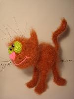 Набиваем спинку котика. Вставляем каркас в ножки и туловище. Определив, где у нас будет находиться хвост(это в районе 12ряда туловища), продеваем в то место проволоку от каркаса для хвоста. Набиваем лапки особенно полукруглую подошву (для удобства набивки лапок деревянной шпажкой для барбекю).