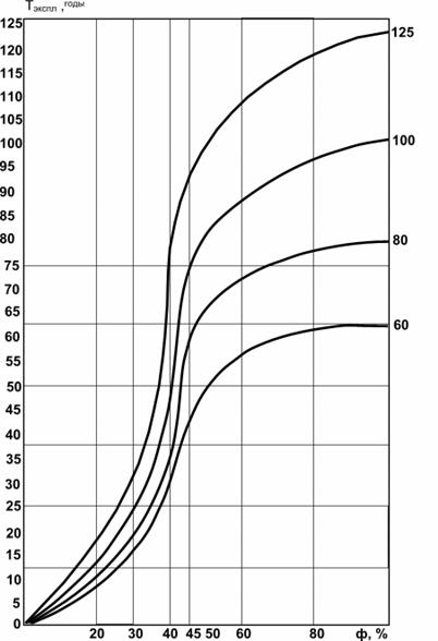 Рис.1. Физический износ слоистых конструкций (срок службы 60-125 лет)