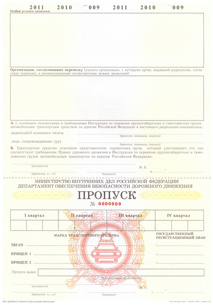 Пропуск, предоставляющий право на движение транспортного средства ⇐ ПредыдущаяСтр 3 из 3