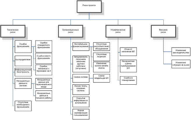 На этапе инициации проекта принята следующая иерархическая структура рисков: