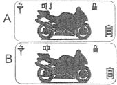 В случае, если мотоцикл подвергся взлому, то сигнализация и брелок будут бить тревогу светом, звуком и вибрацией независимо от выбранного режима А или В (пункт 1). На ЖК экране брелка обозначится картинка с символом ключа, света и запущенного мотора как показано на рисунке.