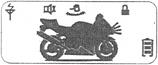 Если мотоцикл был подвергнут удару, включется кратковременная звуковая и световая сигнализация брелка на 5 секунд. ЖК экран брелка покажет изображение на рисунке. Мотоцикл будет только моргать 5 секунд. В случае повторения ударов в последующие 15 секунд, брелок начнет бить тревогу 15 секунд, мотоцикл будет моргать светом 15 секунд.