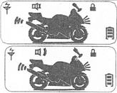 При движении в случае действий безжалостных преступников, которые захватили ваш мотоцикл для блокировки нажмите кнопку , Мотор остановится, мотоцикл и брелок начнут бить тревогу и сверкать огнями.