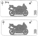 Нажмите кнопку для снятия с режима охраны. Мотоцикл дважды просигнализирует в соответствии со звуковым/немым режимом. На брелке сигнализации автоматически появится символ выключенной охраны как показано на рисунке и автопостановки на охрану, если этот режим был выбран ранее.