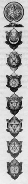 ' ТРИ ВОСХОДЯЩИХ ПОТОКА СЛИВАЮТСЯ В АГЬЯ-ЧАКРЕ, ПЕРЕПОЛНЯЯ ЕЕ НЕКТАРОМ. ЙОГИ, СОЕДИНИВШИСЬ С БОГОМ, ПЬЮТ ЭТОТ НЕКТАР. ПЕРВЫЙ ЦВЕТОК РАСЦВЕТАЕТ ВНИЗ ЛЕПЕСТКАМИ, ВСЕ ОСТАЛЬНЫЕ В ЦВЕТЕНЬЕ СВОЕМ РАСКРЫВАЮТСЯ ВВЕРХ. ЕСЛИ СОЛЬЮТСЯ ЭТИ ЦВЕТЫ ВОЕДИНО, СМОЖЕШЬ ПОСТИЧЬ ТЫ ЕДИНСТВО, ЧТО ФОРМЫ НЕ ЗНАЕТ. СРЕДЬ ТЕХ ЦВЕТОВ ВЕРШИТСЯ СУДЬБЫ ТВОЕЙ ИГРА, ЖИЗНИ ТВОЕЙ ПЛАМЯ МЕРЦАЕТ ТАМ ЖЕ. ЗА ПЛАМЕНЕМ ТЕМ УВИДИШЬ ВЕЧНЫЙ БЛЕСК БОЖЕСТВЕННОГО СВЕТА: ДУХ ТВОЙ СЛИВАЕТСЯ С НИМ. В ЭТОЙ БОЖЕСТВЕННОЙ ПЬЕСЕ ИГРАТЬ ЛИШЬ НЕМНОГИМ ДАНО. СВАМИ ДИП, ВИДЕВШИЙ ЭТО, ПОСТИГ: «ВЕСЬ ЭТОТ МИР — ЛИШЬ ТЕНЬ». * Шри Махапрабхуджи, бхаджан «Учти нала лаги тривени» из книги «Лила Амрит»