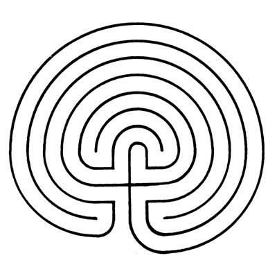 Итак, вы активировали собственную теневую составляющую вашей личности, расшевелили этот упрятанный под спуд котёл страстей и тёмных желаний; вы обрели также символ-ключ к вашей собственной теневой основе. Настало время сплавить воедино эти составляющие с третьим элементом – вашей собственной тенью, вдохнуть жизнь в вашего нового и достаточно могущественного союзника. Для этих целей нам придётся провести небольшой магический ритуал в месте, где вас не потревожат случайные зеваки и свидетели. Для ритуала нам потребуется создать классический левосторонний семикружный лабиринт[3]: