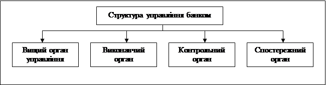 Організаційна структура комерційного банку визначається двома основними моментами: — структурою управління банком; — структурою його функціональних підрозділів та служб. Згідно з положеннями законів України «Про господарські товариства» та «Про банки i банківську діяльність» структура управління кооперативними, пайовими та акціонерними банками з недержавною формою власності є такою: