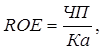 де ЧП — чистий прибуток банку; А — активи банку. ROA — показник ефективності роботи менеджерів банку, він показує, як вони справляються з завданням отримання чистого прибутку з активів банківської установи. ROE — показник, що характеризує відношення чистого прибутку банку після сплати податків до акціонерного капіталу банку і виражається формулою: