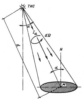 Рис.9. Схема к определению освещенности от точечного источника света (ТИС)