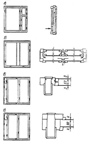 Рис. 27 Конструктивные схемы некоторых шумозащитных окон Звукоизоляция окна зависит от количества и толщины стёкол, толщины воздушного промежутка и плотности прикрытия. Однако повышение звукоизоляции окон приводит к проблеме обеспечения притока воздуха в помещение при закрытых окнах. Следует применять шумозащитные окна с вентиляционными элементами (представлены слева: а – форточка в наружной створке в нижней части; б – тройное остекление и вентиляция; в – спаренные створки и клапан; г – окно с клапаном. Звукоизоляция достигает 26 дБА. Воздухоприток составляет от 140 до 400 м3/час. Практическую ценность представляет звукоизоляция межэтажных перекрытий. Сами по себе плиты перекрытия не могут обеспечить нормативную изоляцию от ударного шума, необходимо применять различные конструкции полов: рулонные полы позволяют за счёт слоистости значительно повысить изоляцию от шума; ещё более эффективен плавающий пол – стяжка (плита из бетона, гипса, асфальта в 30 – 50 мм на слое упругого изоляционного материала толщиной 10 – 30 мм.