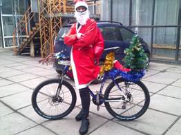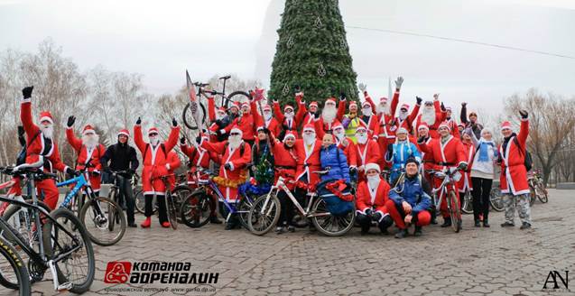 …Так жители Кривого Рога, проходя по улицам своего города, неожиданно для себя смогли получить массу положительных эмоций и прекрасное настроение. Дело в том, что по проезжей части, организованной колонной, на украшенных елочными игрушками велосипедах двигались самые «настоящие» Деды Морозы! А вместе с ними двигалась ошеломляющая волна Новогоднего позитива! Словно по волшебству, руки прохожих вздымались вверх к небу в приветствующем жесте, махая проезжающим мимо сказочным персонажам. Губы сами расплывались в улыбке, а мысли уносили горожан куда-то далеко-далеко.
