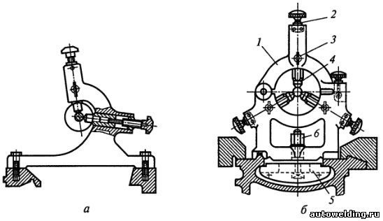 Рис. 4.16. Люнеты: Самой распространенной является установка обрабатываемой заготовки в центрах станка. Заготовку обрабатывают в центрах в случае необходимости обеспечения концентричности обрабатываемых поверхностей при переустановке заготовки на станке, если последующую обработку выполняют на шлифовальном станке тоже в центрах и если это предусмотрено технологией обработки. Заготовки с отверстием устанавливают в центрах с помощью токарных оправок (рис. 4.17).