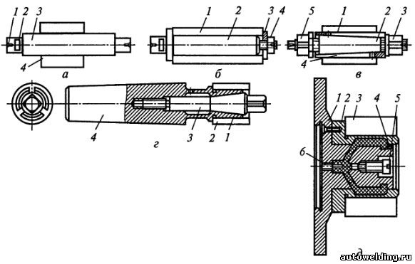 Рис. 4.17. Токарные оправки: Для облегчения условий труда рабочих при закреплении заготовок на станки устанавливают механизированные приводы: пневматические, гидравлические, электрические и магнитные.