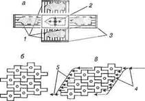 Рис. 13. Крестообразный стояночный модуль (а) и варианты компоновки многоэтажного гаража-стоянки (б, в) [7]: 1 - опорные пластины боковых ячеек; 2 - штыревая площадка лифтоподъемника; 3 - опорные стенки боковых ячеек; 4 - пути подъезда; 5 - пути отъезда Рис. 14. Схема удвоения мест в одноэтажном гараже стандартных размеров (6x3x2, 5 м) [7]: а - заезд-выезд верхнего автомобиля; б - заезд-выезд нижнего автомобиля; в - поперечный разрез; / — поворотная ферма; 2 — шарнир; 3 - опора шарнира Отношение к стоянкам сегодня можно охарактеризовать как безответственное и некомпетентное. Водители очень часть паркуют свои машины с грубейшими нарушениями и весьма неаккуратно. В самых неподходящих местах - на загруженных улицах, в зоне остановочных пунктов, возле самых пешеходных переходов - почти всегда стоят какие-то машины, сильно ухудшая условия движения и увеличивая и без того большие потери. При этом каким-то непостижимым образом их не замечают десятки пеших и моторизованных автоинспекторов. А в других местах, где можно аккуратно запарковать, например, 4 машины, местные умельцы умудряются так поставить 2 автомобиля, что запарковать третью, а тем более четвертую невозможно теоретически - в оставленных интервалах не хватает буквально нескольких сантиметров! Местные управленцы сгоняют все паркующиеся машины только на проезжую часть, что приводит к резкому увеличению всех видов потерь, включая и экологические, ради которых они якобы и стараются. Многие платные стоянки организуются на проезжей части нагруженных улиц в ущерб движению транспортных потоков. В последние годы в Минске стали строить многоэтажные гаражи-стоянки с передвижением машин своим ходом, хотя такой способ перемещения устарел лет на 30. Есть вопросы и к размещению этих гаражей - то их строят в самом сердце исторического города, то в одном квартале построили 3 (!?) многоэтажных гаража. Иными словами, отношение к стоянкам, особенно в больших городах, требует серьезного осмысления и корректировки.