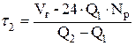 При округлении числа станций в большую сторону (n> n0) целесообразно предусмотреть вариант циклической перекачки. При циклической перекачке эксплуатация нефтепровода осуществляется на двух режимах (рис. 3): часть планового времени τ 2 перекачка ведется на повышенном режиме с производительностью Q2> Q (например, если на каждой НПС включено mм магистральных насосов). Остаток времени τ 1 нефтепровод работает на пониженном режиме с производительностью Q1< Q (например, если на каждой НПС включено (mм – 1) магистральных насосов). Параметры циклической перекачки определяются из решения системы уравнений