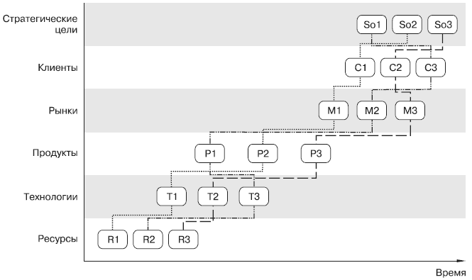 Процесс создания корпоративной «дорожной карты» начинается с исследования и анализа внутренней и внешней среды компании, что может послужить источником исходной информации. Для успешности процесса его участникам должно быть присуще свойство сильной приверженности организации. Инициирование процесса требует значительных усилий, особенно на ранних стадиях, когда определяются и согласуются с процессом создания «дорожной карты» миссия, видение, стратегические цели, ресурсы, масштаб, команда и система взглядов. В [Bruce, Fine, 2004] отмечается, что «самые важные «дорожные карты» возникают в качестве реакции на воспринимаемые угрозы и связывают планы реализации определенного процесса с интересами организаций и индивидов». Соответственно, существующие опасения лучше стимулируют создание «дорожной карты», чем простой «поиск возможностей развития». Этап исследования и анализа (А1) должен включать в себя анализ внутренней среды компании, анализ ближайшей среды, анализ макросреды. Один из отправных пунктов — это анализ навыков, ноу- хау и ключевых компетенций компании. Он включает в себя анализ того, что может быть достигнуто с помощью этих навыков в ближайшем и отдаленном будущем. Внутренний анализ может помочь обнаружить достоинства и недостатки компании с целью увеличения конкурентного преимущества. Достоинства компании — это ее ресурсы и способности, такие как патенты, деловая репутация, преимущество в затратах, навыки, ноу-хау, природные ресурсы, сети и т.д. Отсутствие этих достоинств можно рассматривать как недостаток. Сопутствующее портфельному анализу изучение внешней среды является чрезвычайно важным в процессе создания «дорожной карты». Анализ ближайшей среды, или отраслевой анализ, выявляют новые возможности и угрозы. Например, к потенциальным возможностям могут быть отнесены существующая свободная ниша на рынке, появление новой технологии или устранение торговых ограничений. Однако новые жесткие ограничения, появление товаров-заменителей или новых конкурентов — это угрозы для компании. Чтобы избежать путаницы, уточним, что создание «дорожной карты» — это вид мета-метода. Он может включать хорошо разработанные методы планирования, позаимствованные из таких методик, как SWOT-анализ, подход Портера, портфельный анализ, матрица BCG, разработка сценариев развития событий, метод структурирования функций качества (quality function deployment) и др. В процессе анализа следует обосновать, почему необходимо создание корпоративной «дорожной карты». Лица, принимающие ключевые решения, должны выяснить, действительно ли они столкнулись с проблемой, которая может быть разрешена с помощью создания корпоративной «дорожной карты». Это осуществляется на стадии определения проблемы (А2). Менеджеры должны устранить проблемы, чтобы удовлетворить свои потребности и достигнуть поставленных целей. На данной стадии, например, могут высказываться следующие утверждения: «Информационная система не стандартизована, и ее элементы не связаны между собой, что скрывает информацию от сотрудников и делает невозможной эффективную деятельность» (компания Daimler); «новое законодательство требует, чтобы крупные фармацевтические компании заключали лицензионные соглашения» (компания GlaKo); «производственные расходы превысили расходы конкурентов по прич
