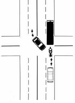 Воскресным вечером вы возвращаетесь домой после поездки. Движение на автостраде плотное и быстрое. Солнце пекло весь день, вы устали, но вынуждены поддерживать высокую скорость, чтобы держаться в потоке. Съехав с автострады, вы с облегчением вздыхаете, и не спеша едете домой по четырехполосной улице. Вы держите достаточную дистанцию, поэтому перед вами постоянно вклиниваются нетерпеливые водители. Вы решаете уменьшить дистанцию и на всякий случай кладете пальцы на рычаг тормоза. Боясь опоздать, вы бросаете короткий взгляд на часы, а когда поднимаете голову, стоп-сигналы передней машины уже горят. Вы тормозите изо всех сил, но дистанции не достаточно. Переднее колесо врезается в бампер, почти сразу под визг тормозов задняя машина бьет мотоцикл в хвост. Никто не поранился, но байк придется ремонтировать, да и домой вы сегодня точно опоздали. Не расслабляйтесь к концу маршрута. Не стоит думать об опоздании и тем более поглядывать на часы - это сильно отвлекает от дороги. Сократив дистанцию, положите пальцы на рычаг тормоза, но помните, что этого не достаточно. В плотном потоке старайтесь смотреть не на переднюю машину, а на несколько автомобилей вперед. Тогда вы сможете заметить начало торможения потока гораздо раньше, чем зажгутся стоп-сигналы переднего автомобиля. Держитесь левой колеи передней автомашины - так будет лучше видно вам и вас. Увидев, что впереди начали зажигаться стоп-сигналы, чуть-чуть придавите рычаг тормоза, чтобы задняя машина приготовилась к торможению.