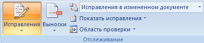 На панели " Отслеживание" находятся инструменты позволяющие отслеживать изменения, вносимые в документ. Для этого надо установить кнопку " Исправления" в " нажатое" состояние.