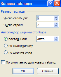 Если таблица очень большая и количество предлагаемых ячеек недостаточно, нужно воспользоваться опцией " Вставить таблицу" и в появившемся окне задать необходимое количество строк и столбцов