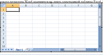 Как и в предыдущих версиях Word позволяет вставлять документ таблицы Excel. Для этого служит кнопка " Таблица Excel". При этом в документ вставляется " настоящая" электронная таблица Excel, а верхняя лента текстового редактора Word заменяется на ленту электронной таблицы Excel. Переключаться между программами можно путем двойного щелчка на поле документа Word или на поле таблицы Excel.