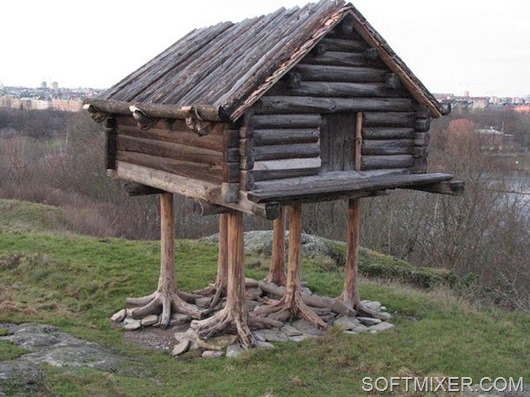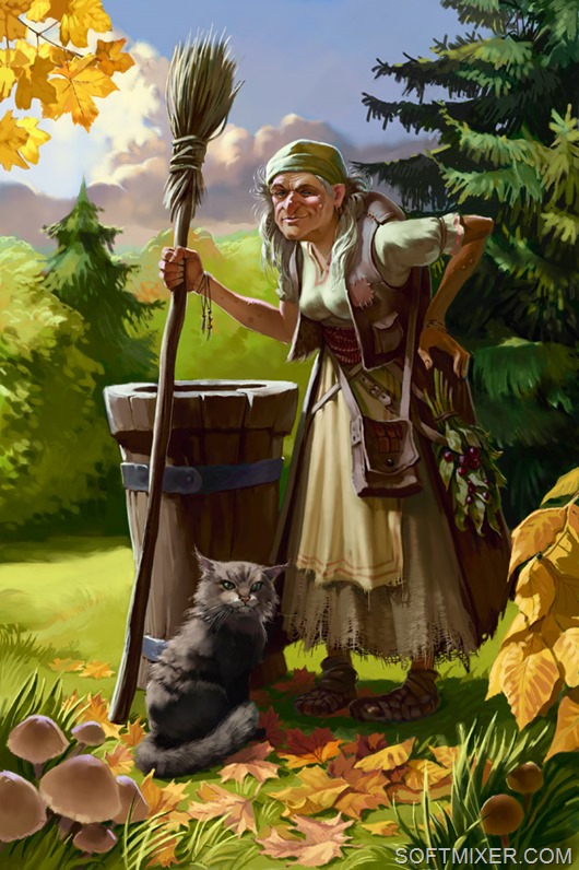 Иногда изба снабжается кодовым замком; обычно он имеет вид говорящего черепа, которому нужно сообщить пароль. Бывают, впрочем, и более презентабельные запоры — например, в виде кота или даже... повешенного на дверь калача. А порой, вместо замка в доме - зубастая пасть, вместо засовов – человечьи руки и ноги. В сказках иногда можно встретить такие слова: " Изба у Яги покрыта блином, подперта пирогом". Но пусть эти сдобные подробности вас не обманывают, потому что в данном случае это не признак изобилия, а поминальная еда. И все это – черепа, кости, куриные ноги - неслучайно. Дело в том, что древние славяне хоронили умерших в домовинах — гробах, расположенных над землей на очень высоких пнях. Корни этих пней, похожие на куриные ноги, порой выглядывали из-под земли. Домовины ставились таким образом, чтобы отверстие в них было обращено в противоположную от поселения сторону – к лесу. Покойников клали ногами к выходу, поэтому, если кому-то в голову приходило заглянуть в домовину, то он мог увидеть только ноги. Собственно, отсюда происходят все эти сказочные " повернись, избушка, ко мне передом, а к лесу задом". Герой сказки, Иван-царевич или Иван-дурак (без разницы), оказавшись в трудном положении и испробовав все доступные средства, обращается к недоступным – потусторонним. Это отголосок языческой традиции просить совета и помощи у усопших предков. Подробно об этом рассказывается в книге фольклориста Владимира Проппа, которая называется " Исторические корни волшебной сказки". Пропп пишет, что Баба Яга внутри домовины представлялась как бы живым мертвецом. Она неподвижно лежала и не видела пришедшего из мира живых человека, пока не узнавала о госте по запаху. Отсюда и ее каноническое " чую, русским духом пахнет! ". Человек, встречающий на границе мира жизни и смерти избушку Бабы Яги, как правило, обращается к ней за мудрым советом. Чтобы получить его, он должен приобщиться к миру мертвых. Для этого Яга сначала парит его в бане, то есть совершает обряд омовения, а потом кормит его – дает ему пищу мертвых. Не испугавшись и приняв угощение, герой доказывает, что он действительно достоин того, чтобы Яга, проводник между миром живых и умерших, помогла ему в его поисках. И неважно, что он ищет – Василису Прекрасную или молодильные яблоки.
