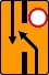 | " Предварительный указатель перестроения на другую проезжую часть" Направление объезда закрытого для движения участка проезжей части на дороге с разделительной полосой или направление движения для возвращения на правую проезжую часть.
