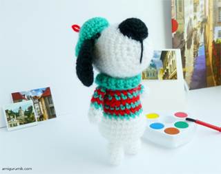 Стянуть оставшиеся петли, использую иглу для сшивания вязаных изделий. Вот и все вязаный кролик в курточке с колпаком готов! По вашим просьбам выкладываю схему вязания собачки в берете и свитере. Схема очень простая, никаких сложных элементов или петелек. Я всегда стараюсь придумывать очень простые схемы, и дополнять получившиеся игрушки необычными аксессуарами. Так я «убиваю сразу нескольких зайцев»:) во первых, связать такую игрушку просто и понятно и под силу даже новичкам, во-вторых, игрушка тем не менее получается уникальная со своим отличительными особенностями. Ну что, за дело;)