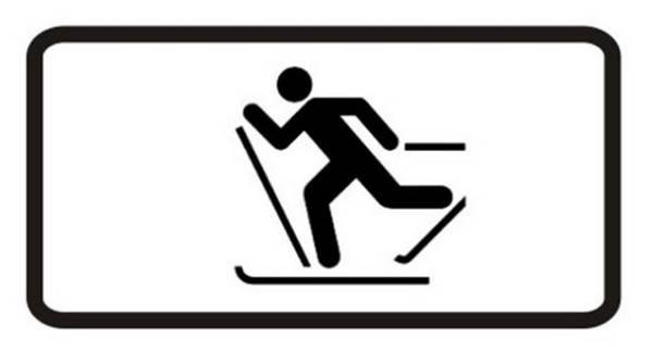 " Лыжники" Табличка, которая сообщает, что дорога проходит вблизи горнолыжных трасс.