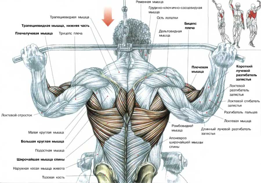 1 День: 1. Скручивание на наклонной скамье (пресс). Если не можешь возьми прямую скамью. Но по мере улучшения физики обязательно перейди на наклонную!!! 10-20 раз Х 4 подхода. 2. Гиперэкстензия (наклоны через козла) 10-20 раз Х 4 подхода 3. Приседание с гантелями в руках. Спина ровная обязательно. Вес каждой гантели 4-7 кг. 10-20 Х 4 подхода 4. Отжимания широким хватом (от лавки) чтобы полегче было. 10-20 раз * 4 подхода 5. Тяга за голову с верхнего блока широким хватом. 10-20 раз 4 подхода. Вес ставь чтобы тебе было не легко делать и такой чтобы ты смогла сделать 20 раз за подход.