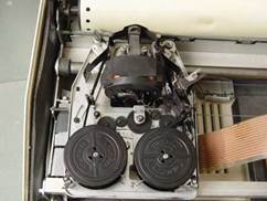 Лента первого вида может использоваться в качестве корректировочной ленты. В таком случае на нее наносится белый краситель. Такая лента позволяет получить более четкий отпечаток, однако после каждого удара краситель полностью переносится на бумагу. После того, как лента полностью используется, ее нужно заменить. Тряпичная лента выполняется в виде кольца, что позволяет использовать одни и те же участки ленты несколько раз. Цветные матричные принтеры используют многоцветную ленту. Она состоит из трёх полос различных цветов. При печати в первый проход печатается первый цвет, затем второй, затем – третий. Лента может наматываться на бабины (Рис. 1.3 а) или упаковываться в картридж (Рис. 1.3 б). Красящая лента при печати постоянно перематывается – для этого имеется специальная механическая передача (набор шестерён). При аккуратном обращении механика весьма долговечна и требует несложного технического обслуживания – замены ленты, очистка от пыли и мусора, а также чистка печатающей головки.