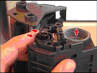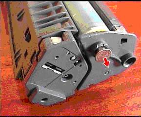| | Рис. 3.9. Освобождение доступа к пробке заправки тонера HP LJ 5L.